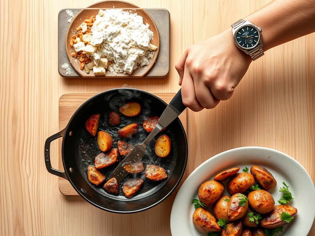 Efficiency in the kitchen is about "Chef's Flow." For most flour and potato recipes, your active prep time will hover around 20 minutes, with cook times ranging from 10 to 30 minutes. The secret to speed is multitasking. While your potatoes boil or steam, use that window to sift your flour and prepare your aromatics. If you are making a quick potato flatbread, the dough only needs a 10-minute rest to allow the gluten to relax, preventing the "snap-back" effect during rolling. Using a heavy-bottomed skillet ensures even heat distribution, reducing the risk of hot spots and cutting down on total time spent at the stove.
