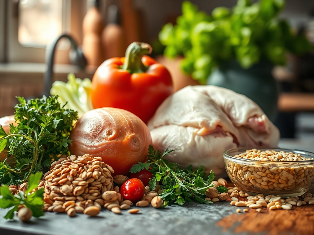 As you see in the ingredient spread below, bone-in chicken thighs (1.5 kg) sit center stage. Bone-in cuts carry collagen for body and fat for flavor insurance. Surrounding them: whole spices (green cardamom pods, black peppercorns, cassia bark, cloves), fresh aromatics (ginger-garlic paste, 80g total), tomatoes (400g, pureed), full-fat yogurt (200g, room temperature to prevent splitting), and your regional spice blend. Kashmiri chili powder (15g) provides color without scorching heat, while turmeric (5g) offers earthy bass notes and anti-inflammatory curcumin.