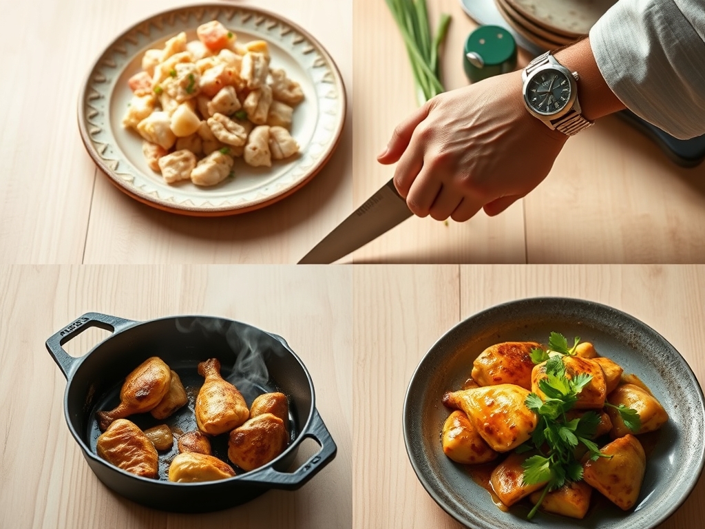 Plating Idea 1: Arrange thighs atop a charred romaine wedge, drizzle with tahini-lemon dressing, and scatter toasted pine nuts and pomegranate arils. The bitter char and creamy tahini balance the sweet-tart chicken.