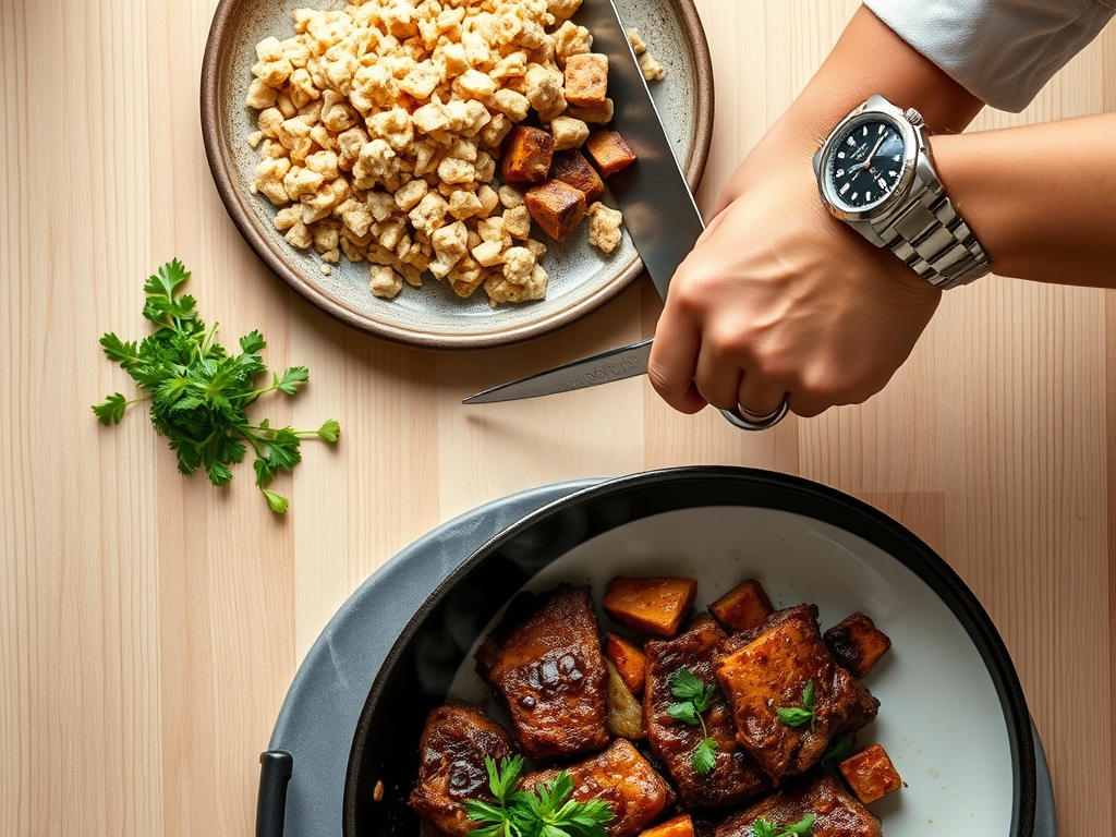 To maintain "day-one" quality, store your blend in airtight glass containers. When reheating, use a saucier with a tablespoon of water or stock. Cover the pan to create a steam-saturated environment. This rehydrates the proteins without overcooking them, ensuring the beef remains tender and the tofu stays succulent.